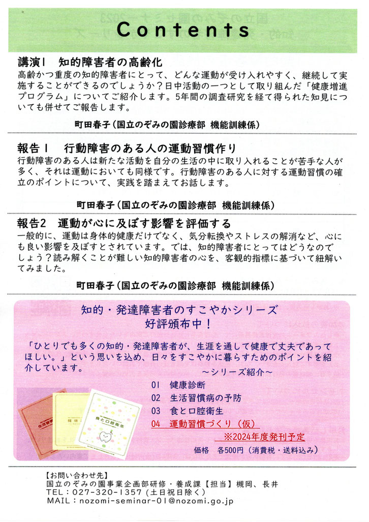 自閉症 · 2024/02/02 研修会のお知らせ 国立のぞみの園セミナー 知的・発達障害者のすこやかシリーズのお知らせ tagPlaceholderカテゴリ: コメントをお書きください コメント: 0